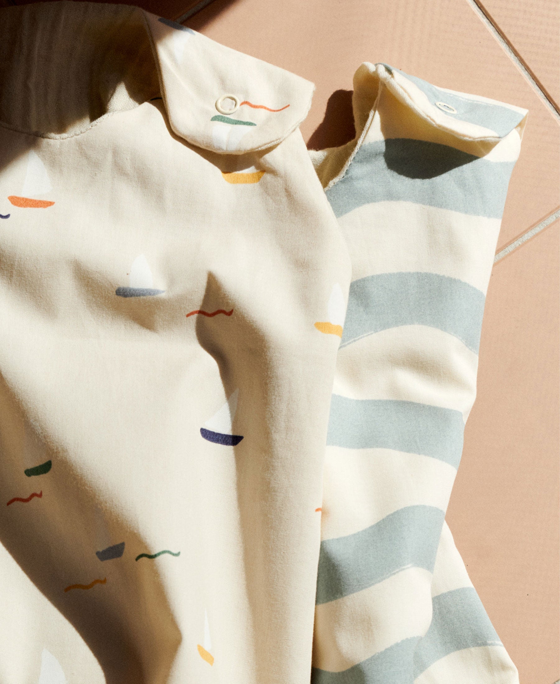 Cette jolie gigoteuse en coton biologique doux aux détails raffinés permettra à votre enfant de dormir paisiblement et en toute sécurité, sans avoir à se débarrasser de sa couette. Elle est dotée de boutons aux épaules, d'une fermeture éclair pour faciliter le change et d'un design réversible : une face en mousseline ultra douce et l'autre en percale de coton douce et agréable à porter.