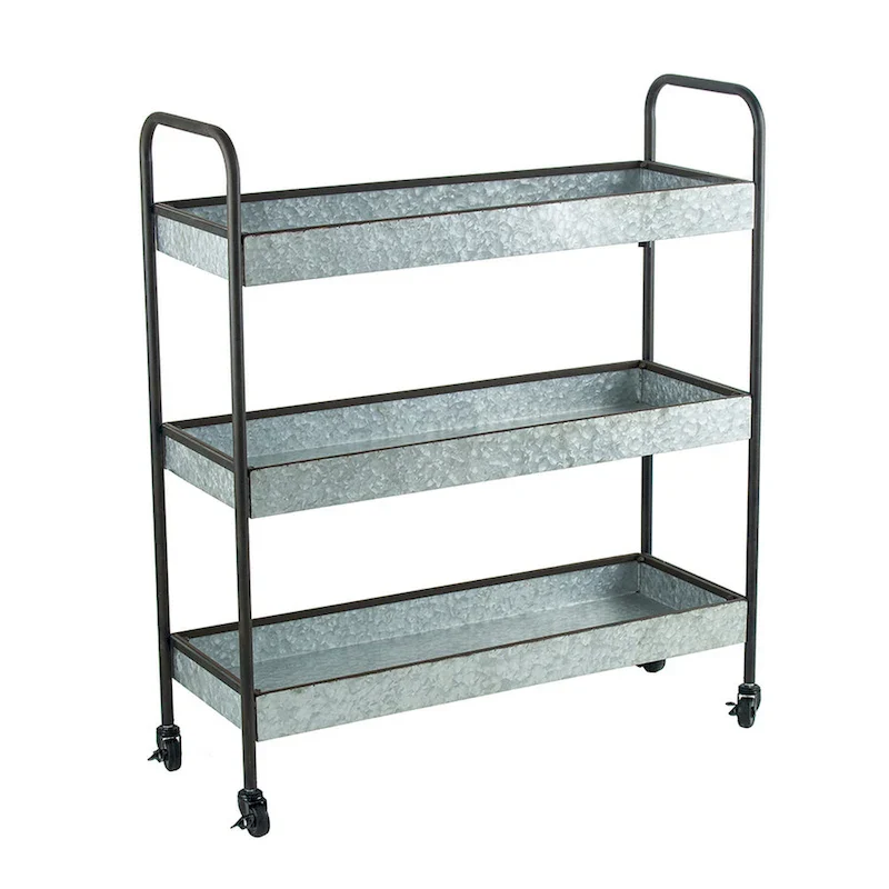 40 Inch Metal Rolling Cart, 3 Tier Shelves, Caster Wheels, Galvanized Gray