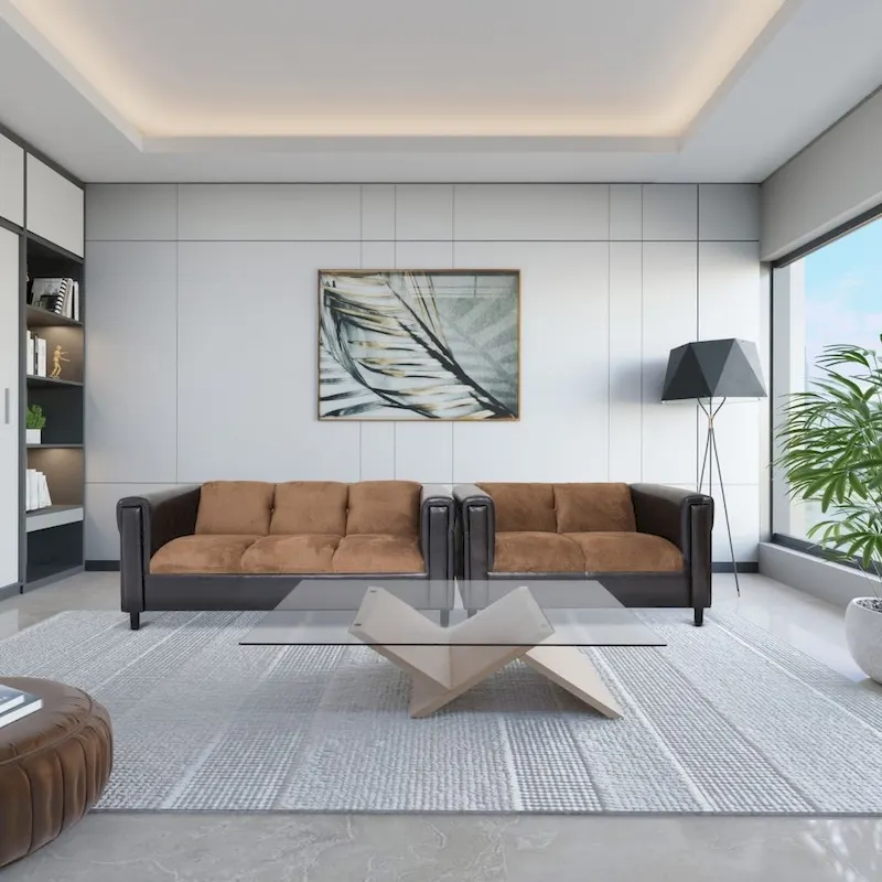 Coast to Coast Sofas Mid Century Modern Loveseat and Sofa Set Faux Leather Solid Wood Frame Upholstered