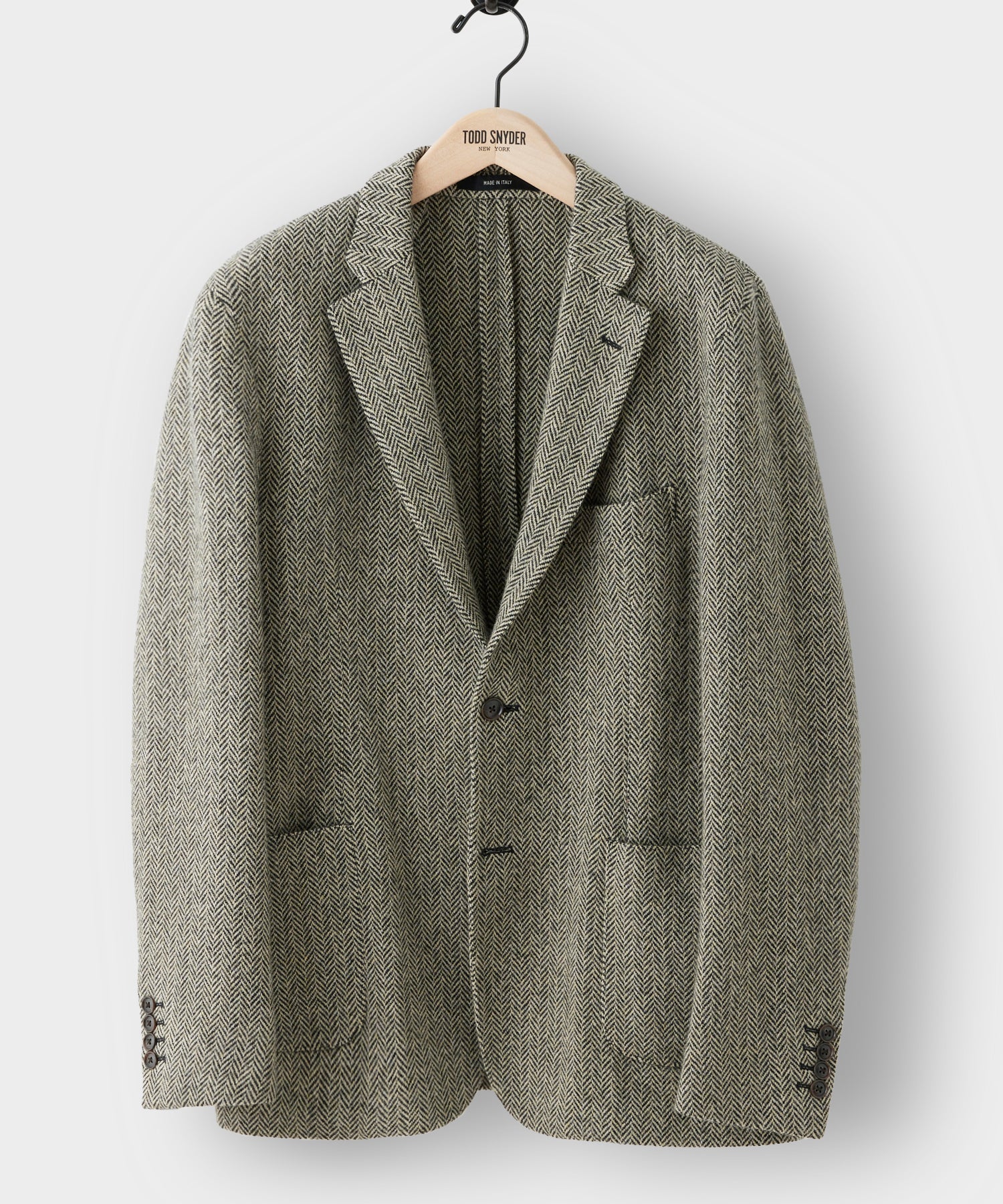 Italian Wool Sport Coat in Black Cream Herringbone