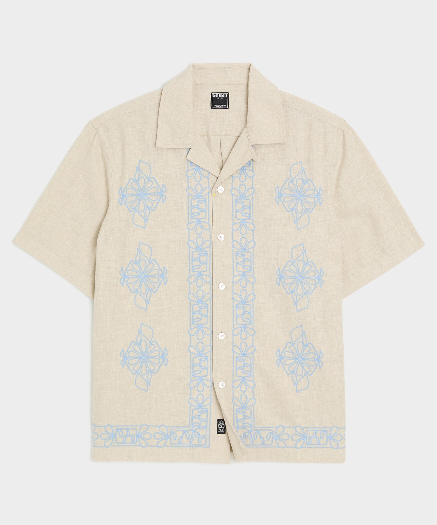 Cropped Embroidered Camp Collar Shirt