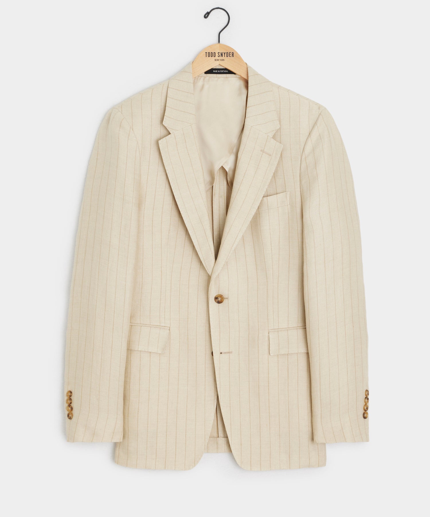 Italian Linen-Silk Sutton Jacket in Tan Pinstripe