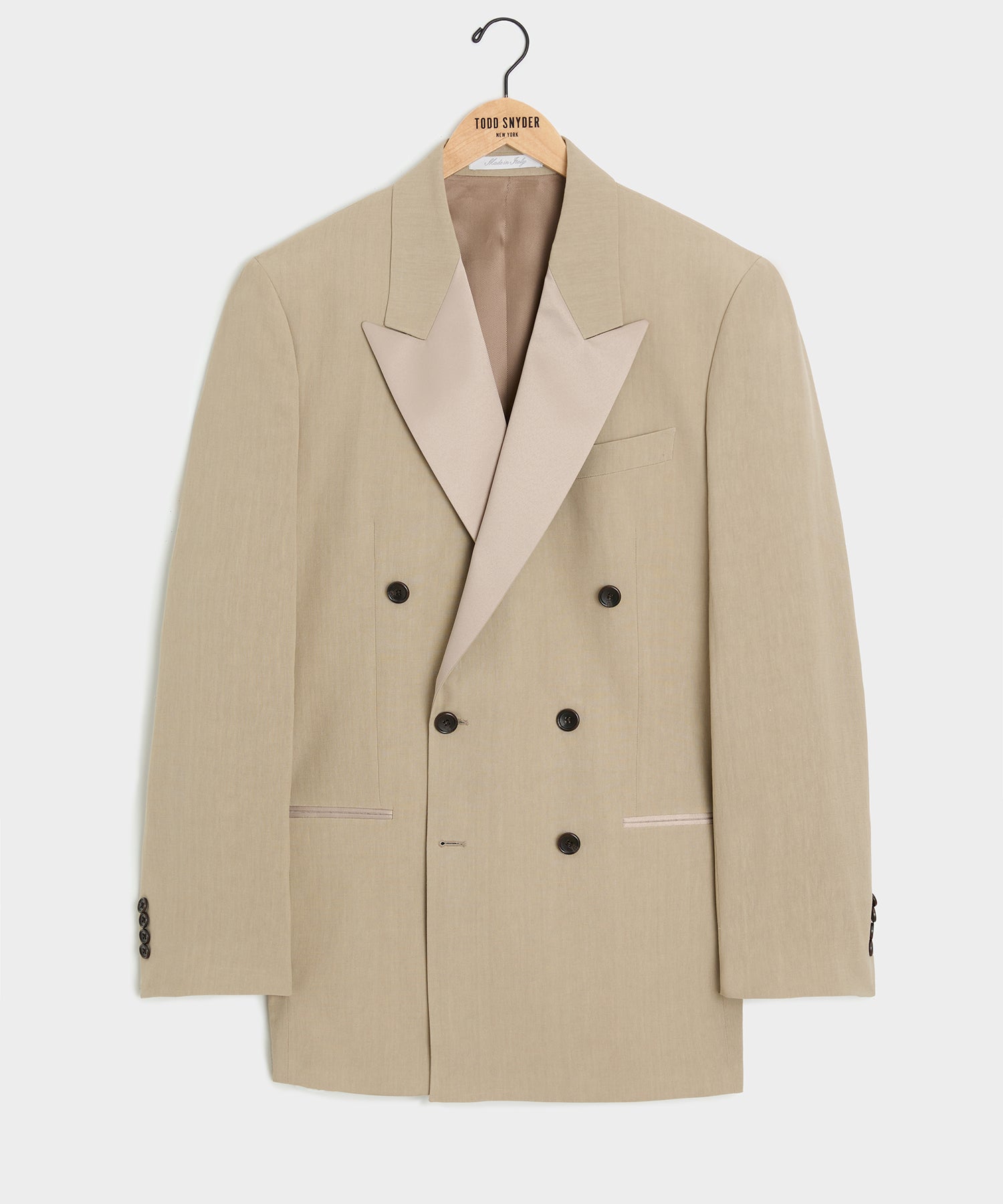 Italian Relaxed Sueded Linen Double-Breasted Tuxedo Jacket