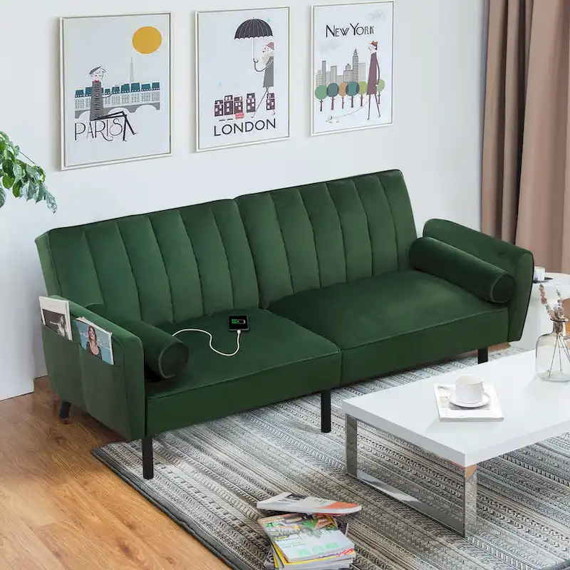 Velvet Loveseat Sleeper Sofa Convertible Futon Couch with USB, Loveseat Coach for Dorm, Apartment, Bonus Room - 2-Person