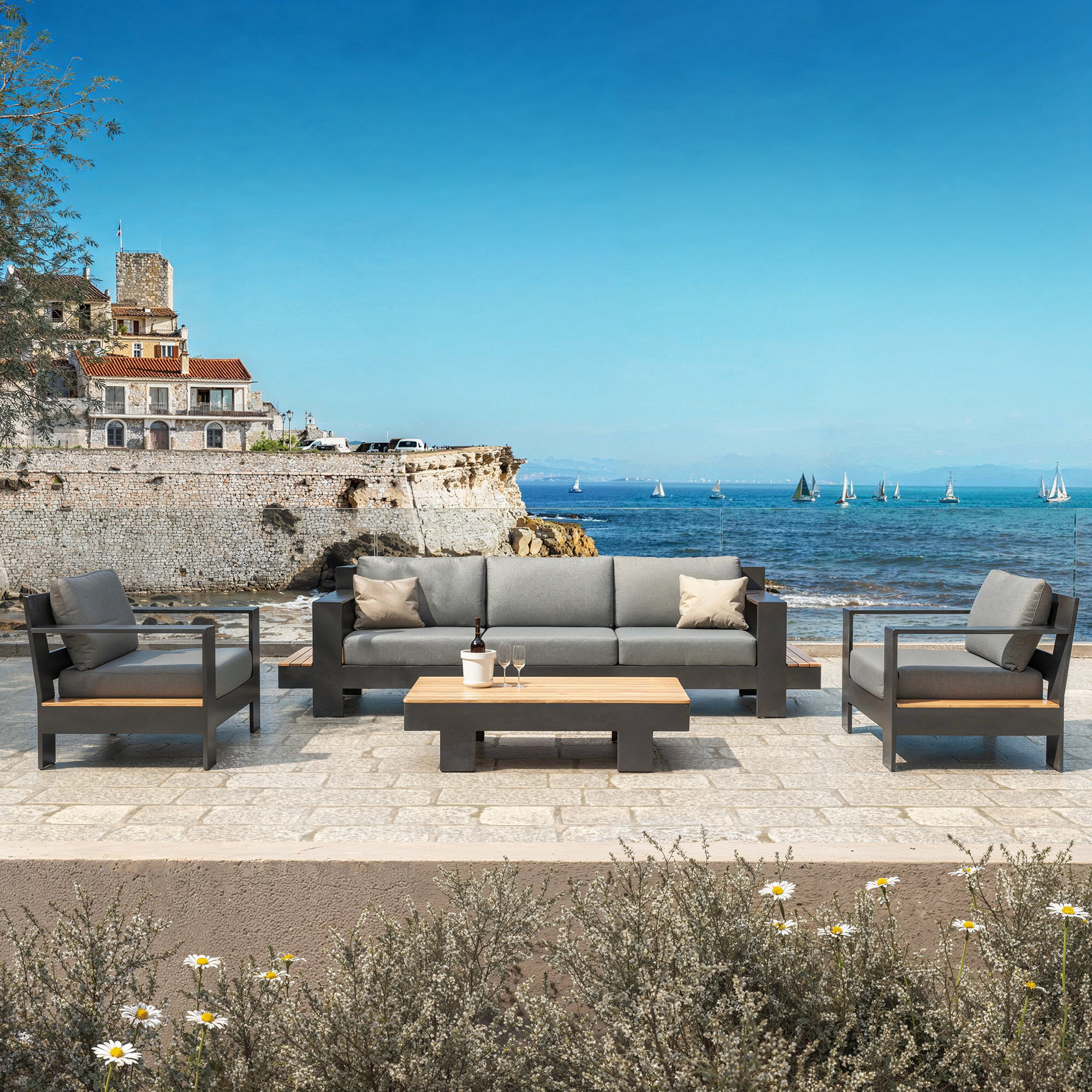 Salon de jardin aluminium et bois teck 5 places Antibes Gris anthracite - Action-sport36