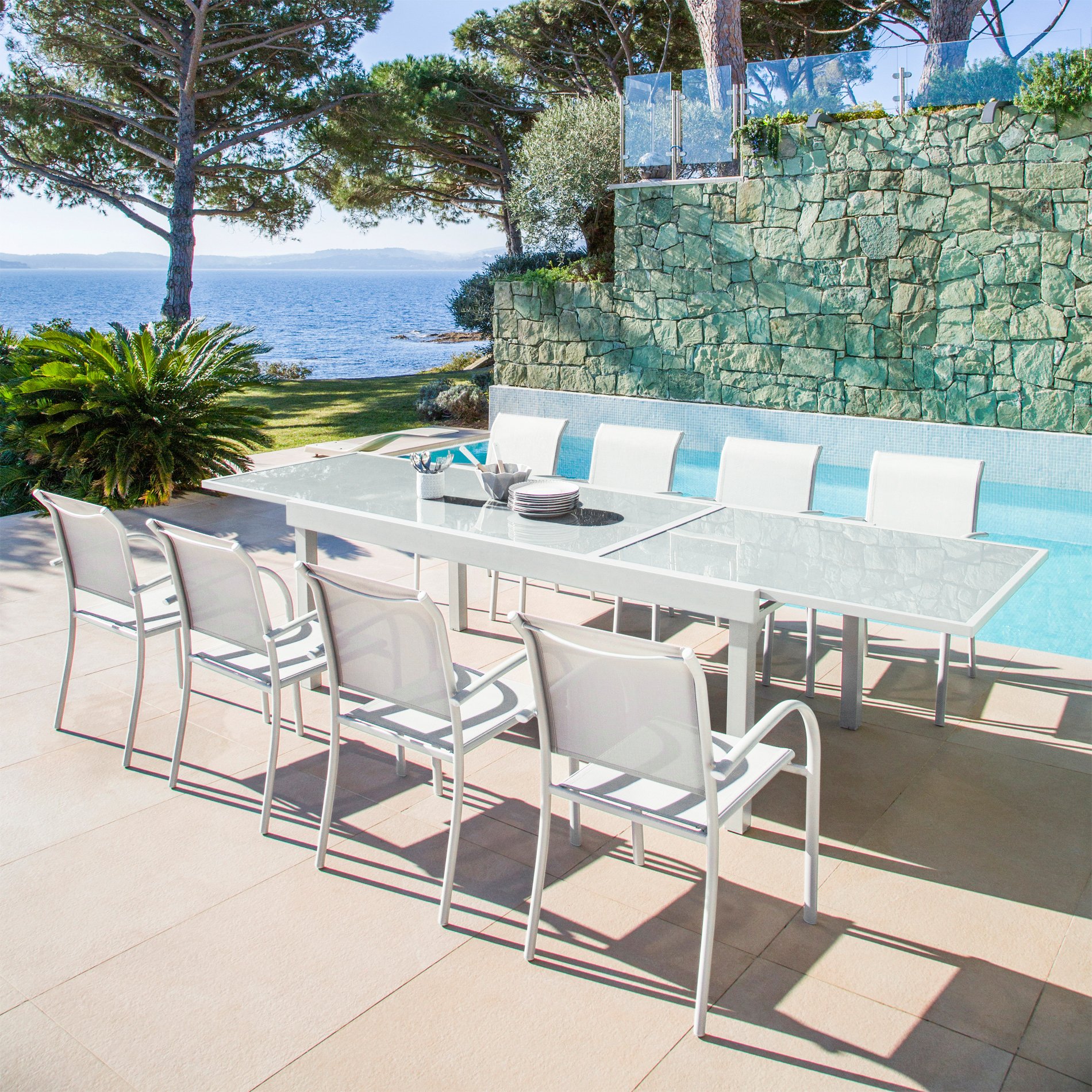 Table de jardin extensible en verre 10 places (135/270 x 90 cm) Murano Blanc - Action-sport36
