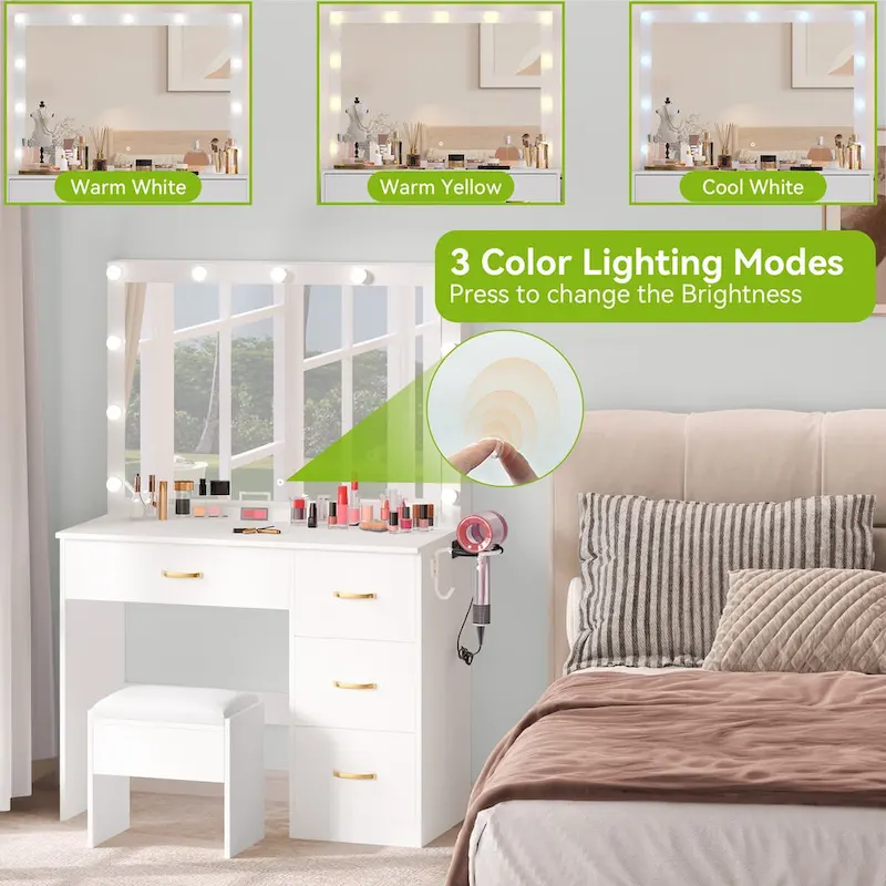 Makeup Vanity with 4 Drawers - 35.4L x 23.6W x 53.5H