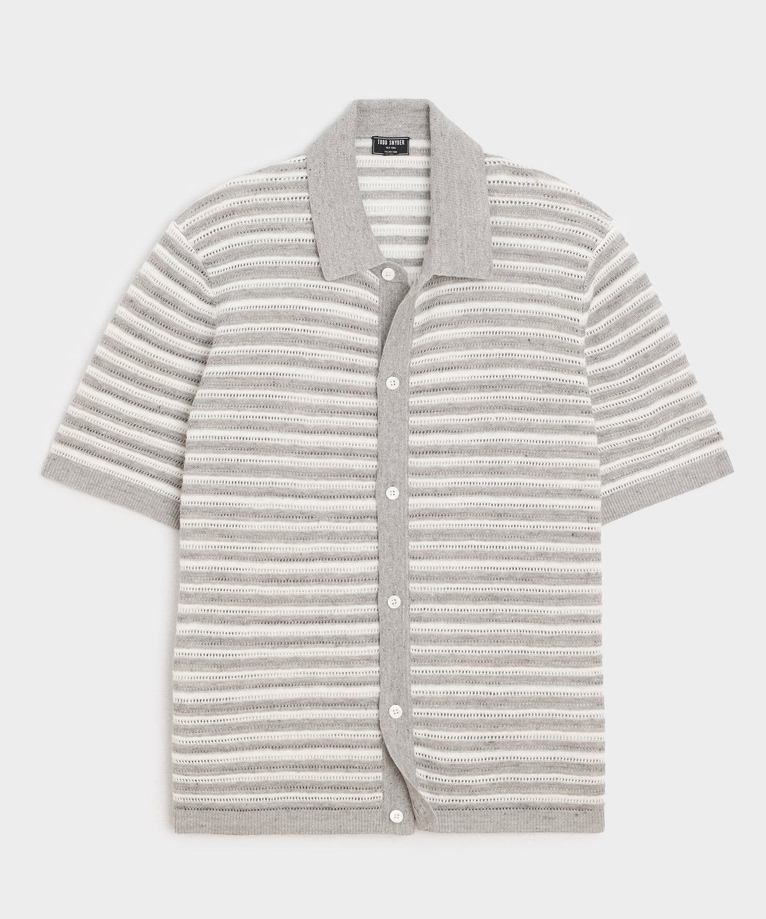 Cropped Pointelle Linen Sweater Polo