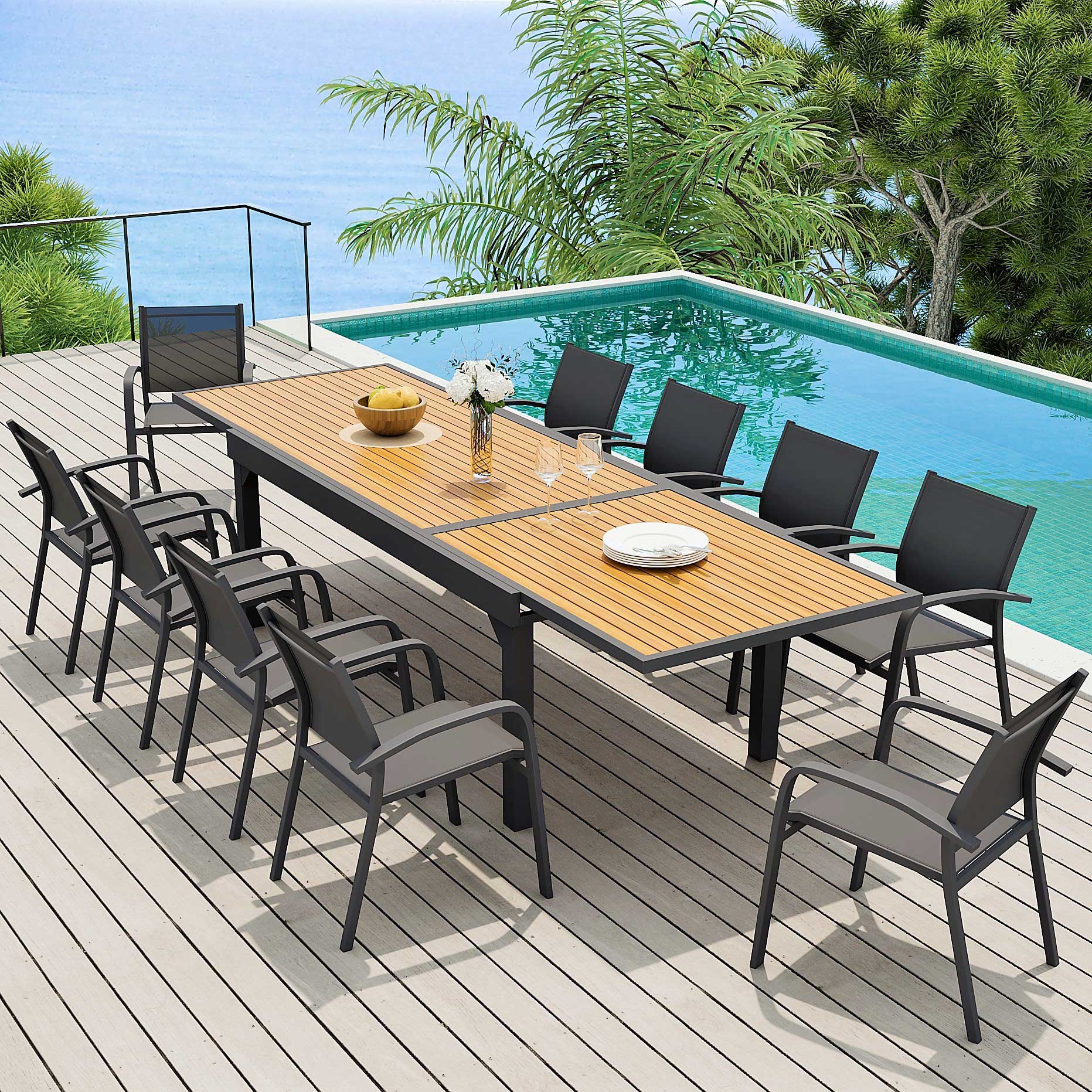 Table de jardin extensible en aluminium 12 places effet bois (200/320 x 100 cm) Murano Gris anthracite - Action-sport36