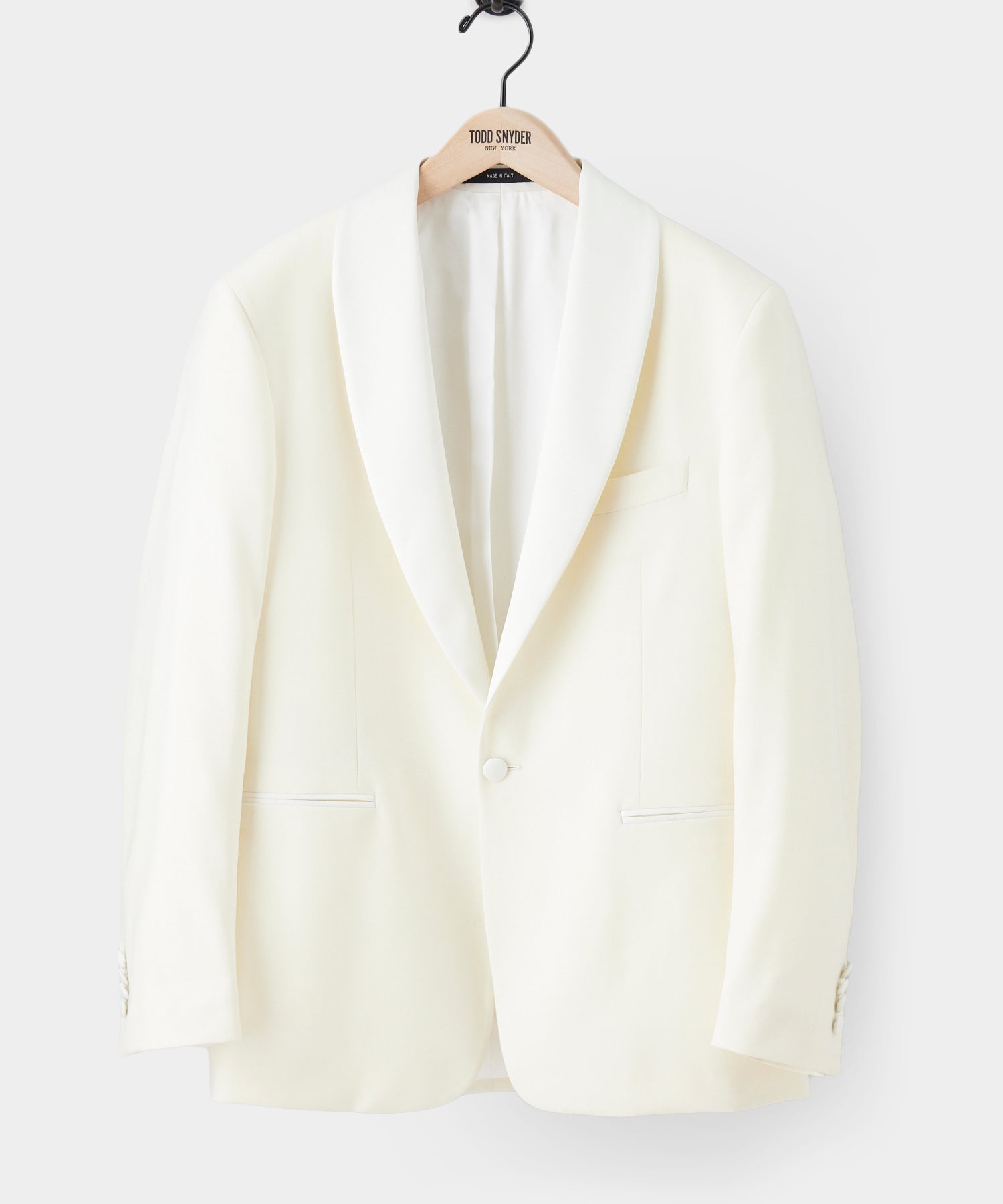 Italian Wool Shawl Tuxedo Jacket in Ivory