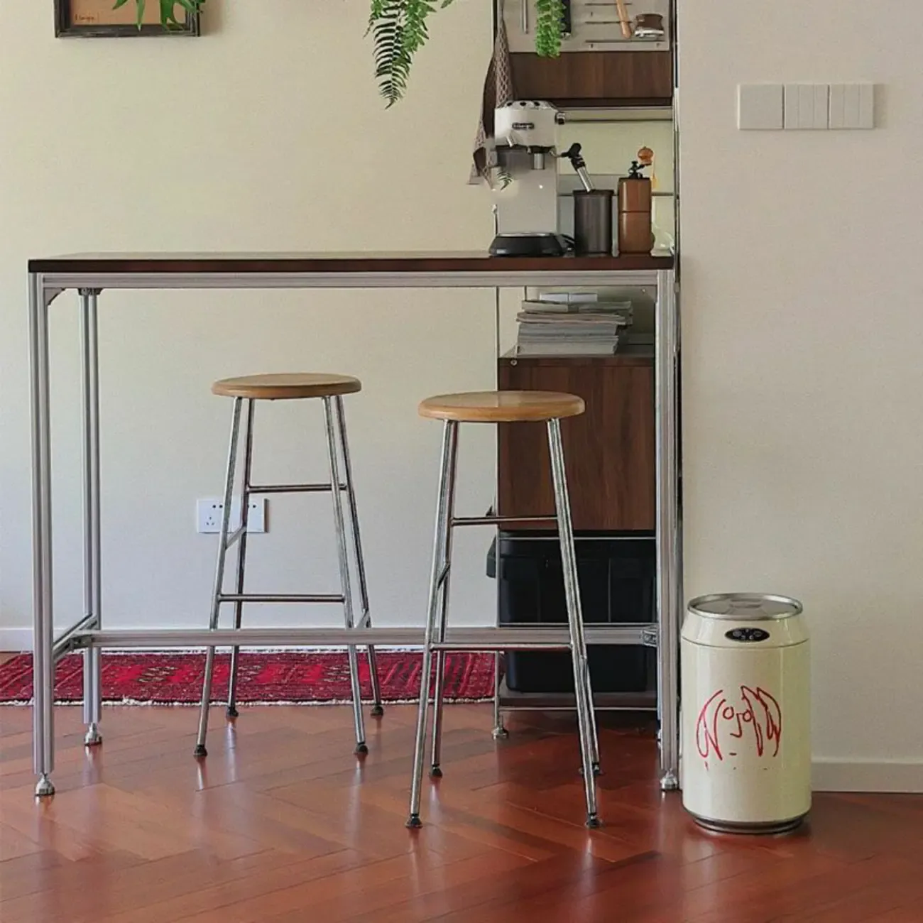 Adjustable Height Industrial Wood Metal Round Bar Table