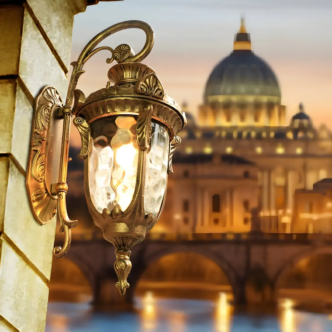 Vintage Bronze Water Ripple Glass Outdoor Wall Lantern Light
