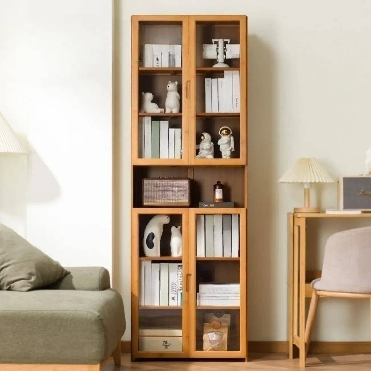 Simple Natural Finish Modular Vertical Wood Bookcase