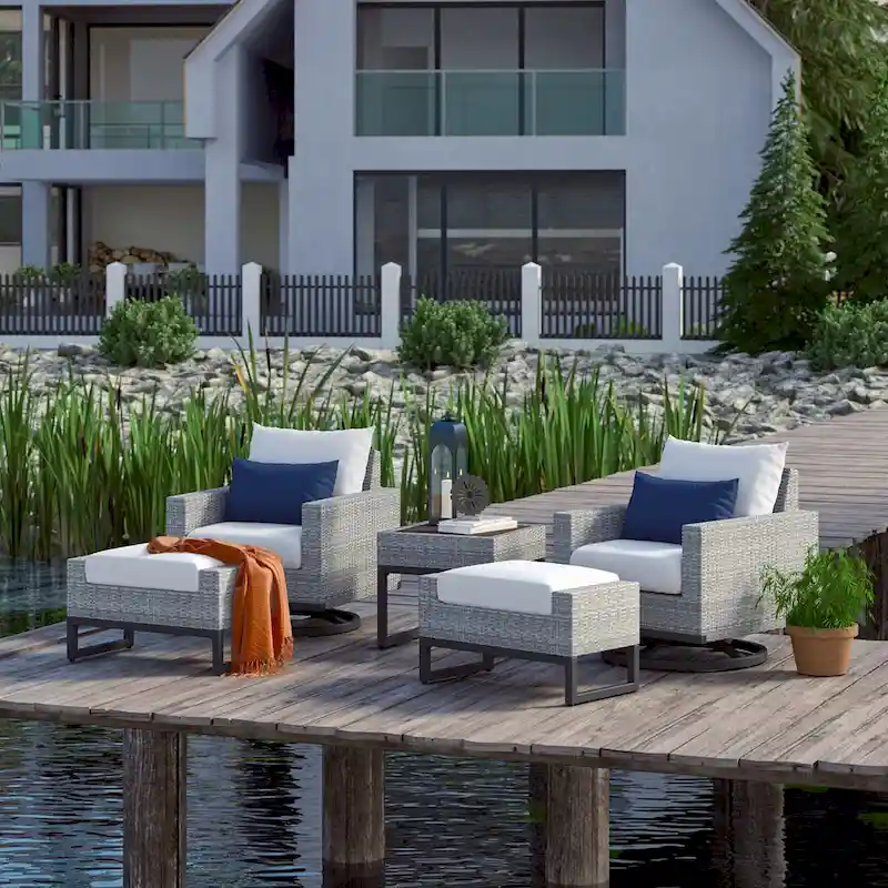 Cannes 5 Piece Aluminum Outdoor Motion Club & Ottoman Set